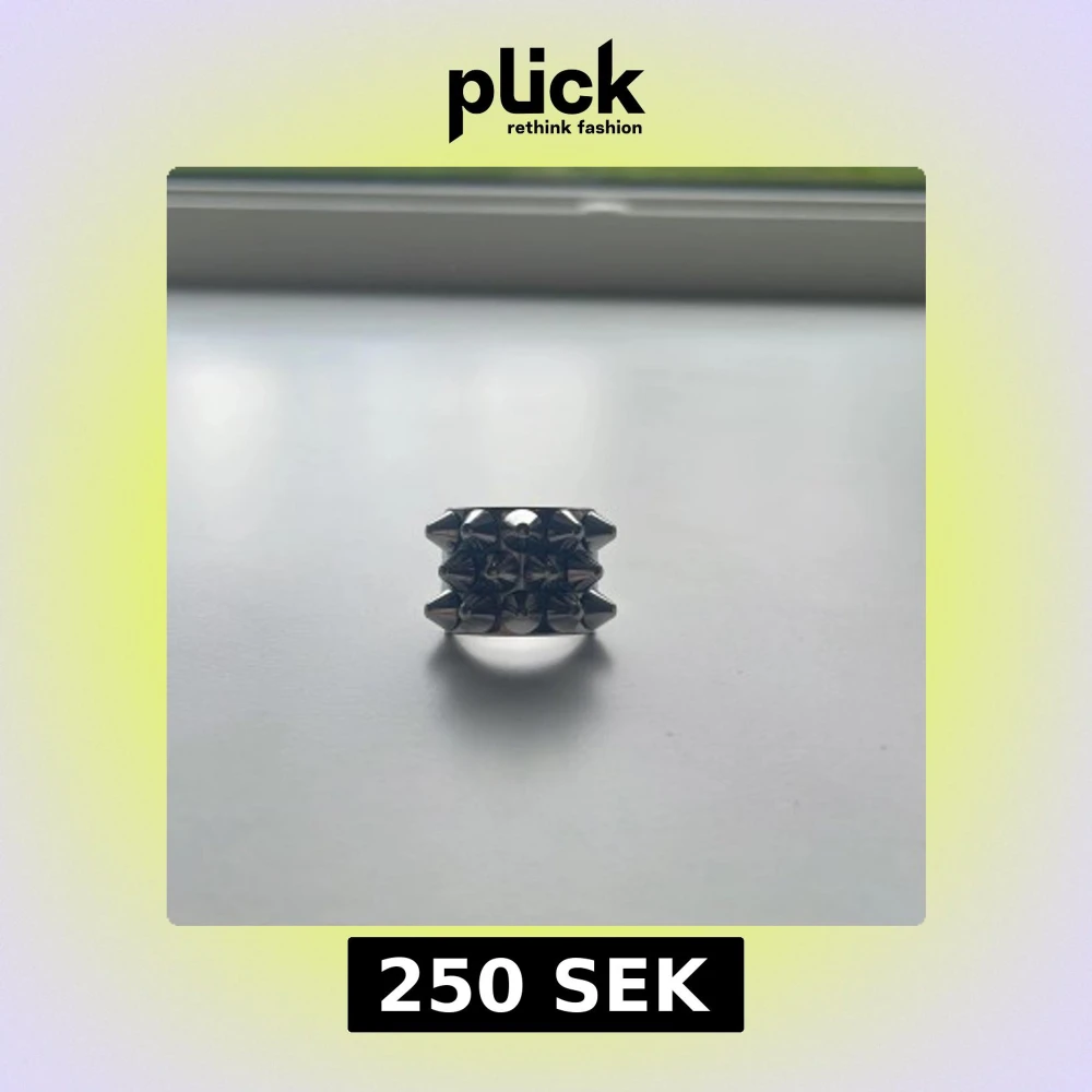 Snygg silvrig ring med nitar på ovansidan! Den är från Edblad och är i storleken 16,80. Det är i mycket gott skick!