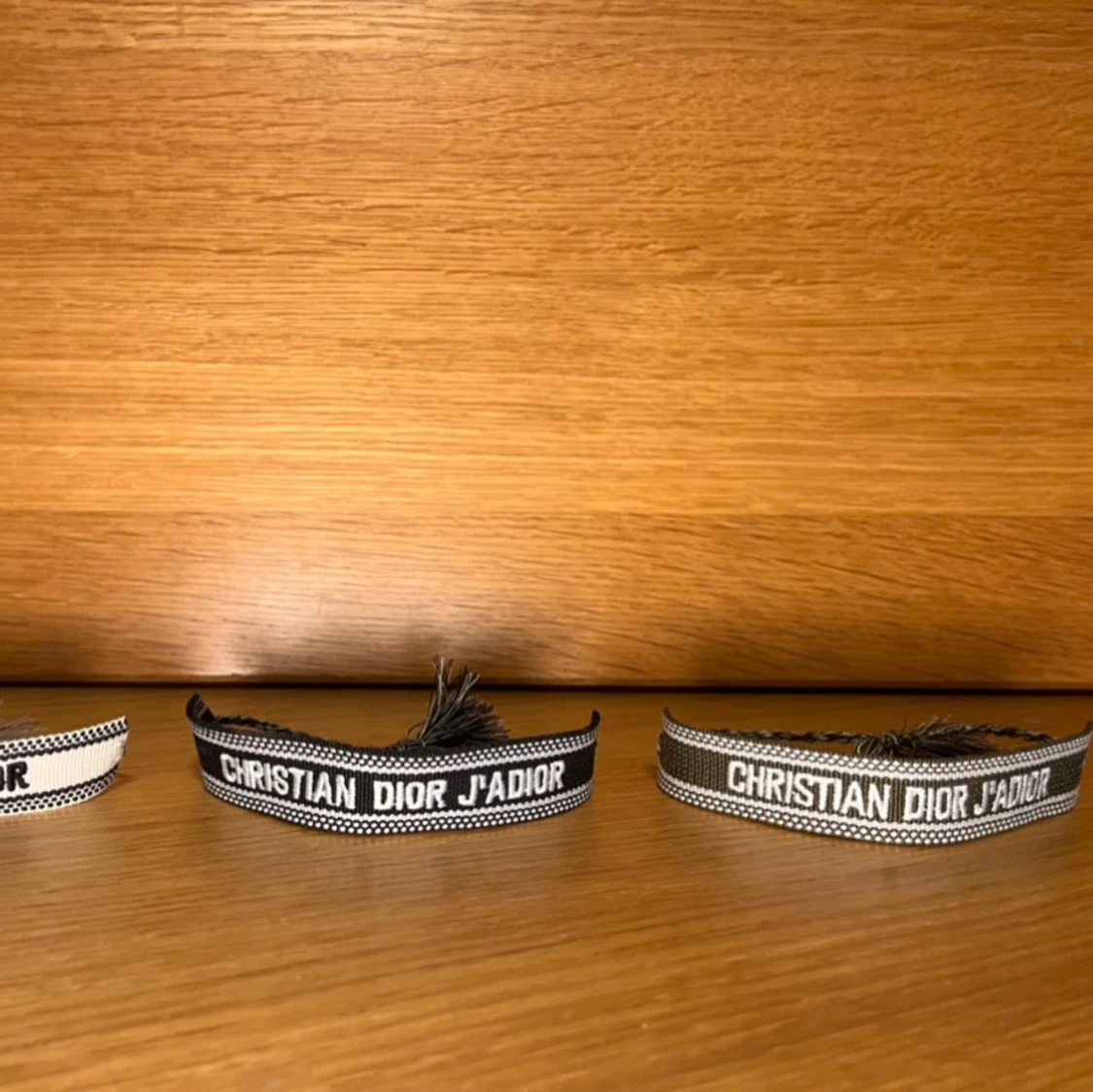 Säljer ikoniska Christian Dior J'Adior armband i vävd textil med broderad logga för 200kr. Finns i svart vit och grön. Justerbar knytning med tofsar i ändarna. Perfekt accessoar för att lyfta din outfit med lyxig känsla. Säljer för ett väldigt billigt pris skriv för fler frågor eller bilder. Armbanden är aldrig använda. Köp helst inte på köp nu för jag vill lägga upp en ny annons