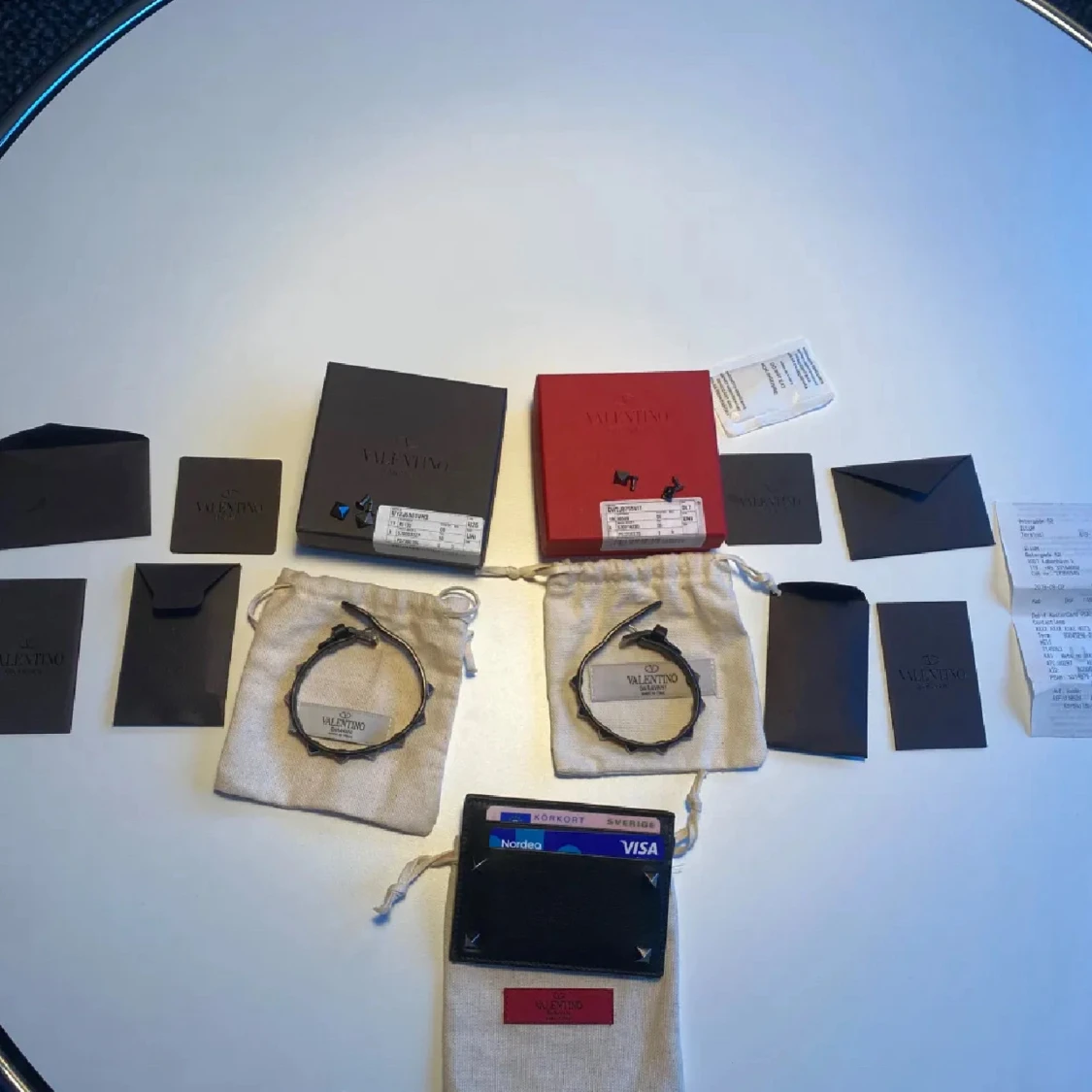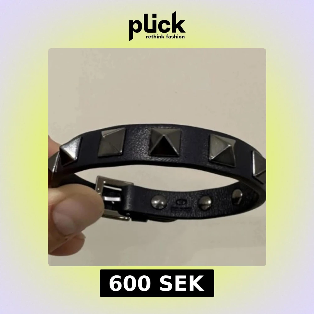 Svart läderarmband från Valentino Garavani med ikoniska pyramidformade silverfärgade nitar. Justerbart spänne i metall och stilren design som ger en edgy vibe. Perfekt accessoar för att lyfta din outfit med en lyxig touch.