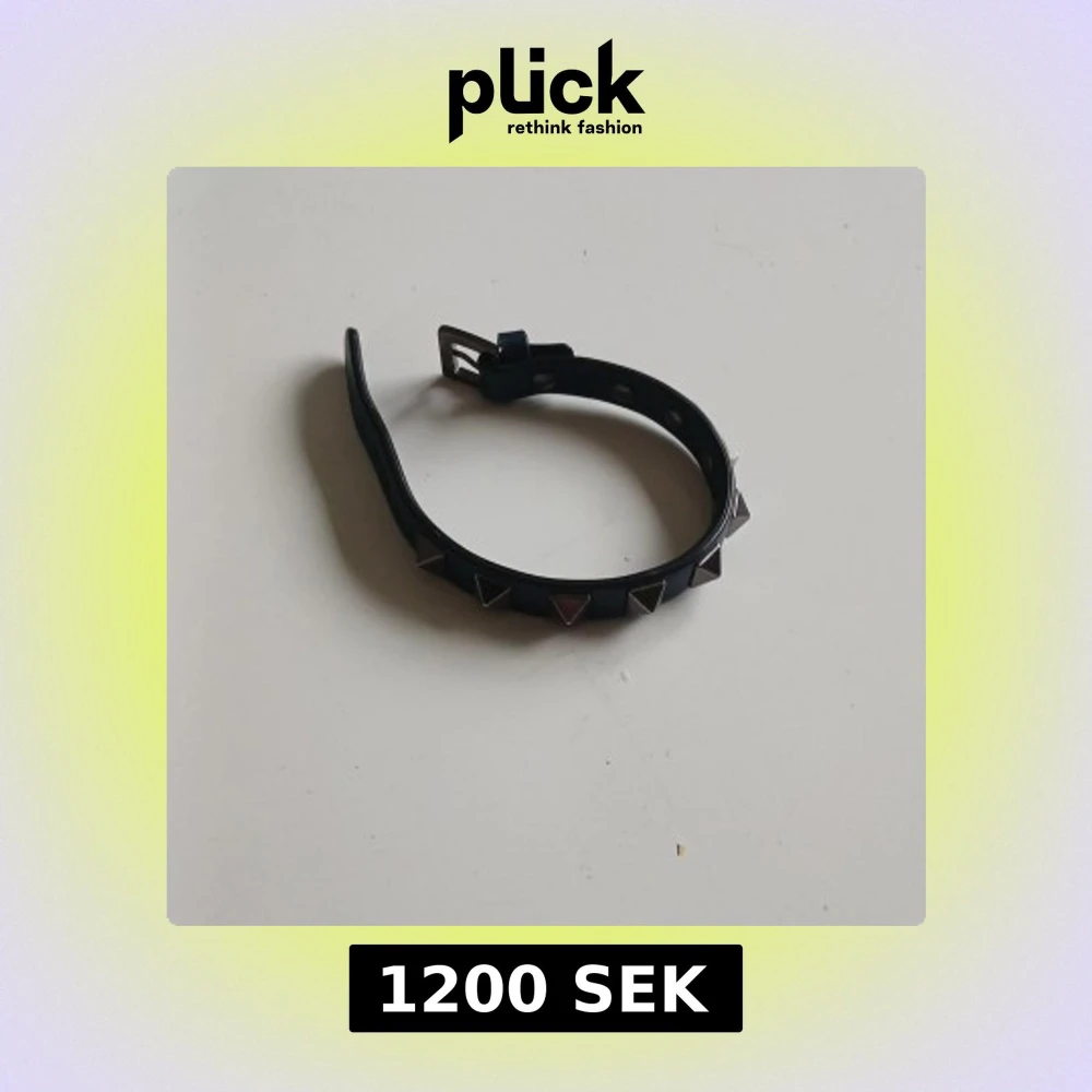 Coolt svart armband med trekantiga silverfärgade nitar och spänne. Perfekt accessoar för att ge din outfit en edgy vibe. Justerbar storlek med flera hål för bästa passform. Ny pris 3500