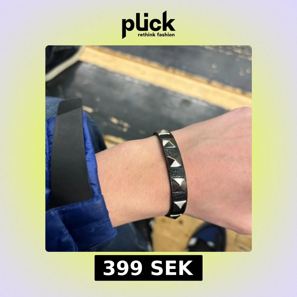 Snyggt valentino armband med silverfärgade pyramidformade nitar. Perfekt för att ge en edgy touch till din outfit. Armbandet är smalt och stilrent, vilket gör det lätt att matcha med andra accessoarer.