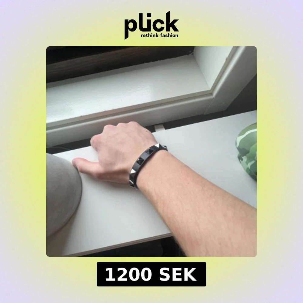 Snyggt Valentino armband med silverfärgade pyramidformade nitar. Perfekt för att ge en edgy touch till din outfit. Armbandet är smalt och stilrent, vilket gör det lätt att matcha med andra accessoarer. Pris kan diskuteras :)