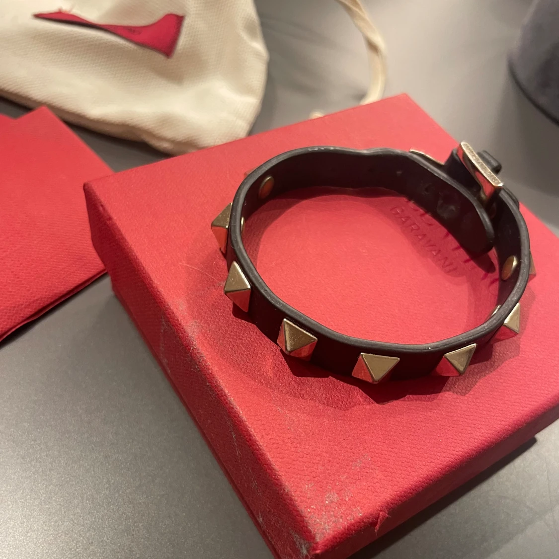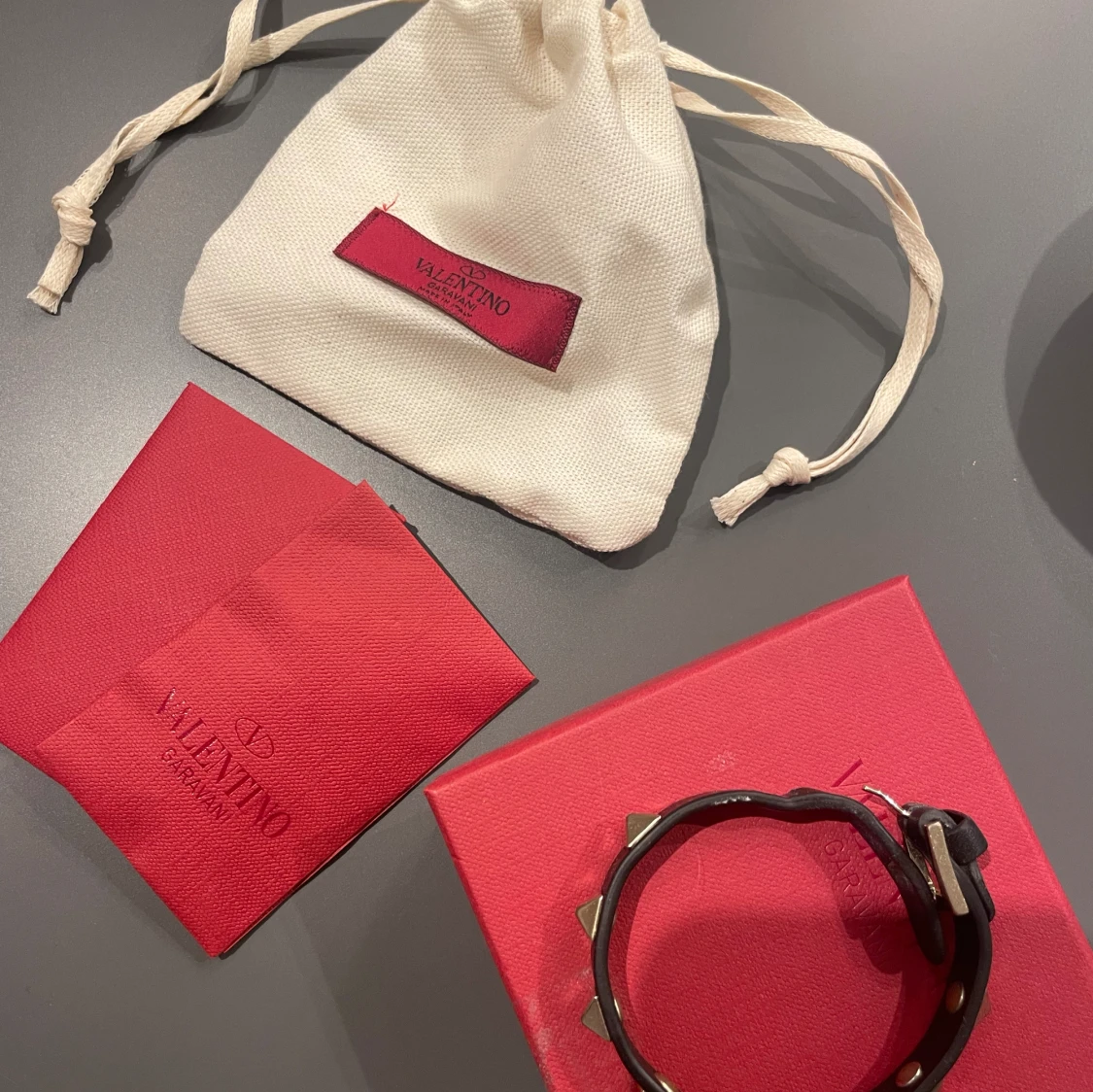 Säljer mitt jättesnygga svarta valentino armband med guldnitar, väldigt bra skick!💗Dustbag till armbandet, asken, äkthetsbevis och extra nitar till armbandet ingår.🥰Pris kan diskuteras!