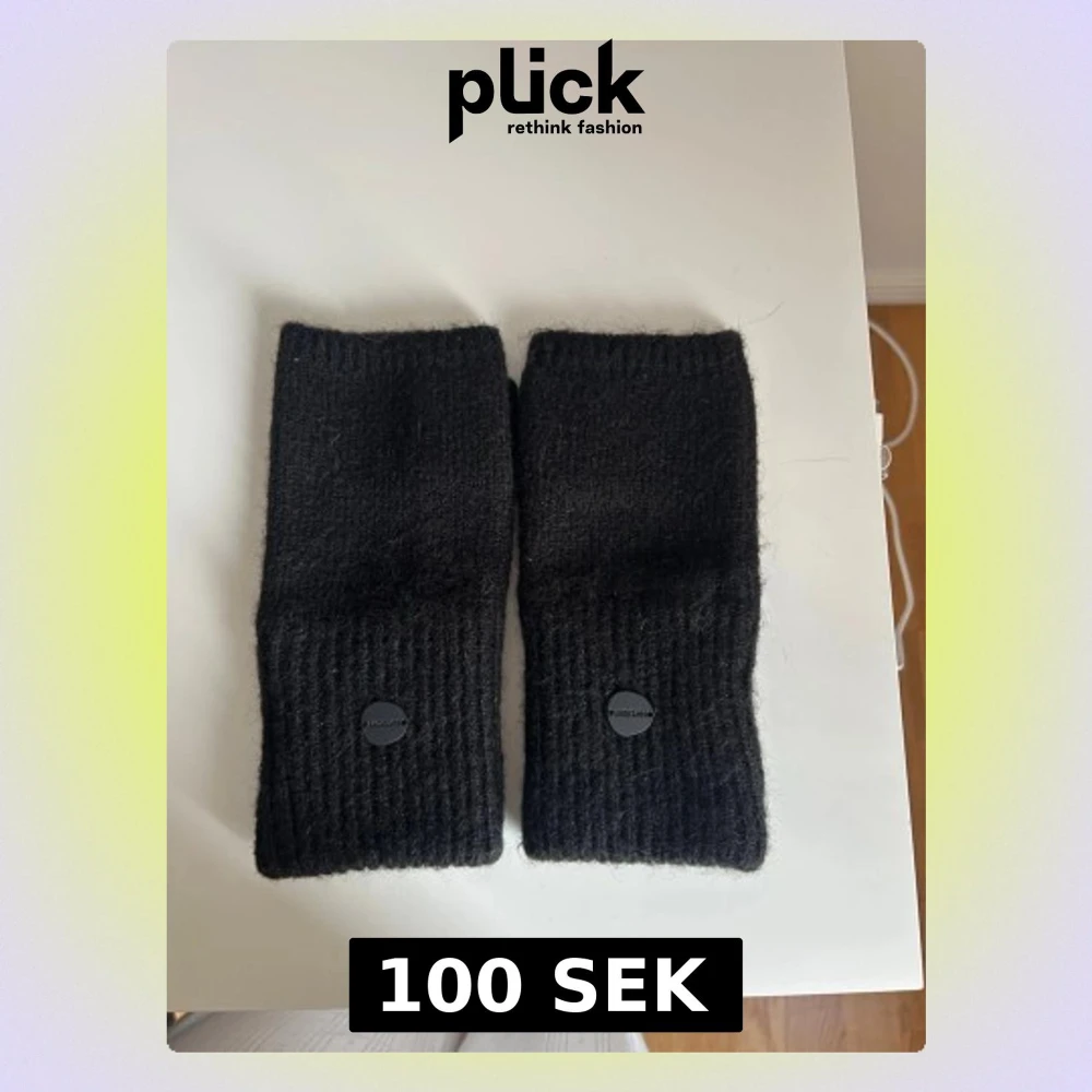 Säljer ett par svarta stickade handledsvärmare från Superdry. De är ribbstickade och har tumhål, vilket gör dem perfekta för dig som vill ha fria fingrar men ändå hålla händerna varma. Diskret logga på ena sidan.