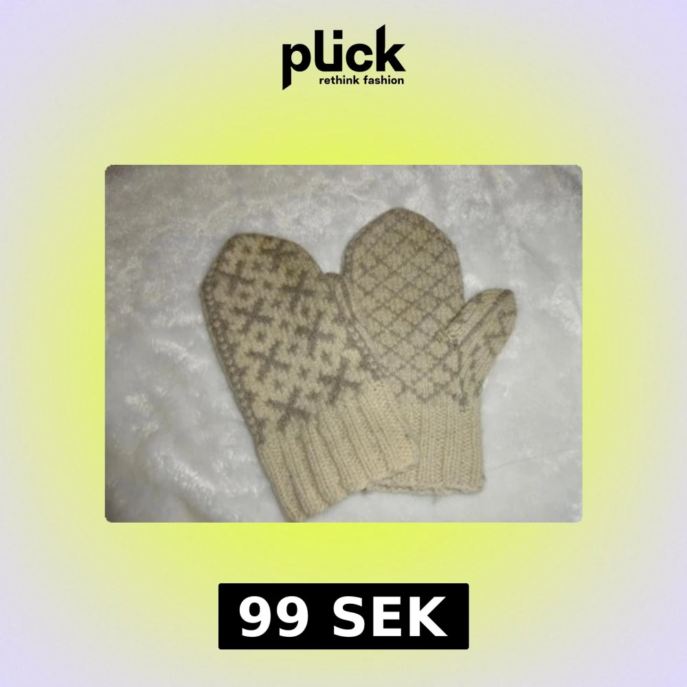 Fina, stickade, ”rutiga”, vantar i beige och grå färg