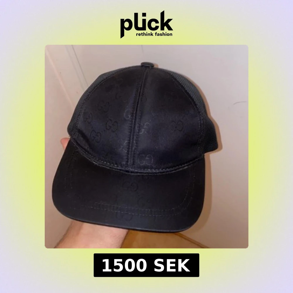 Snygg svart keps från Gucci med diskret GG-monogram över hela kepsen. Kepsen har justerbar snapback baktill och meshpaneler på sidorna för extra ventilation. Klassisk böjd skärm och märkets logga invändigt. Perfekt accessoar för en trendig look. strlk M (pris kan diskuteras)