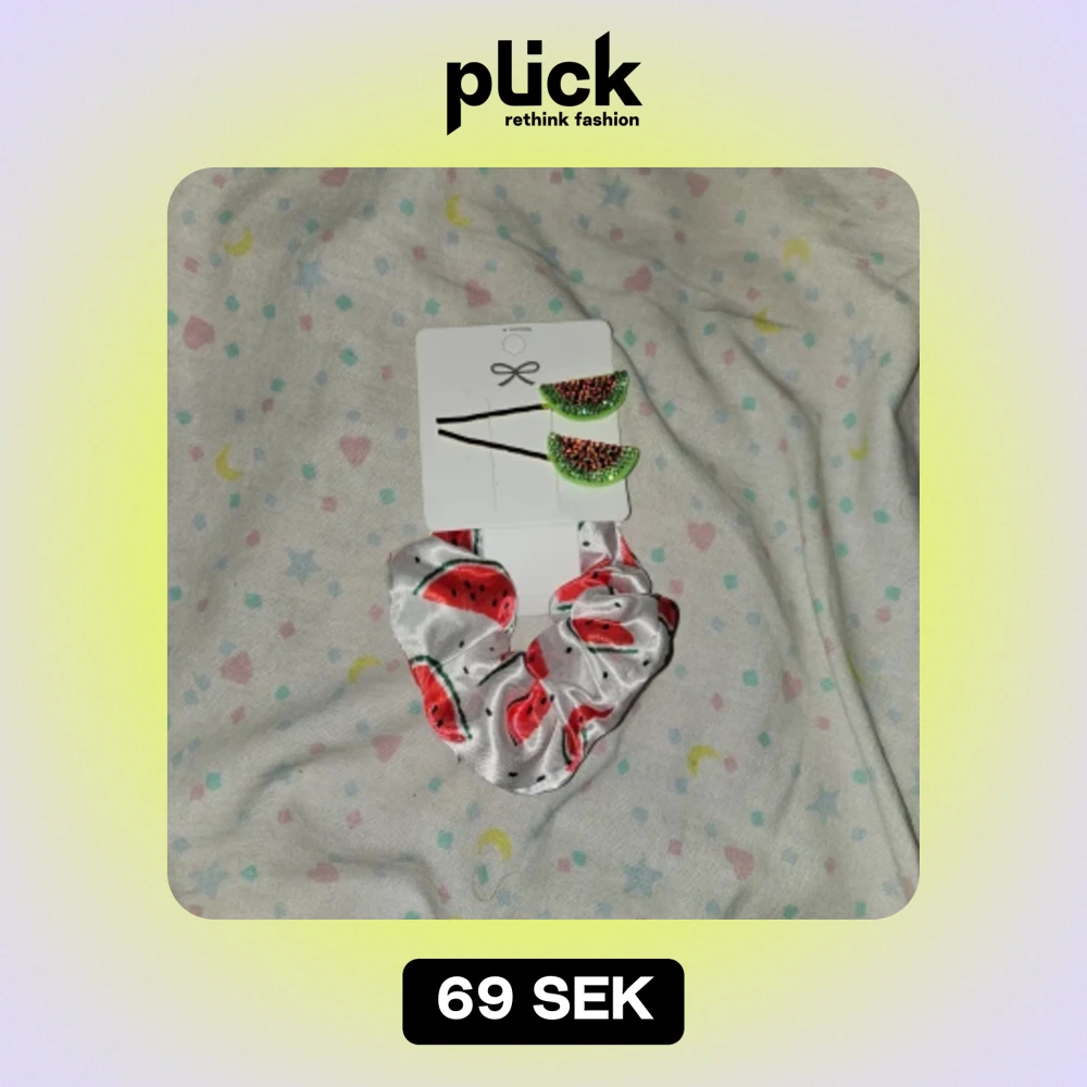 Söt set med två hårklämmor och en scrunchie med vattenmelonmönster.