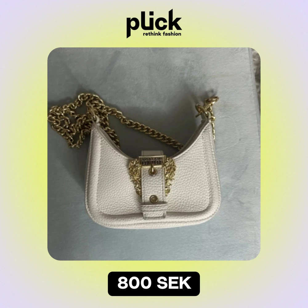 Versace Jeans Couture barocco-spänne mini-väska från Versace Jeans Couture med vit, fejk läder. Nypris 1700kr på miinto