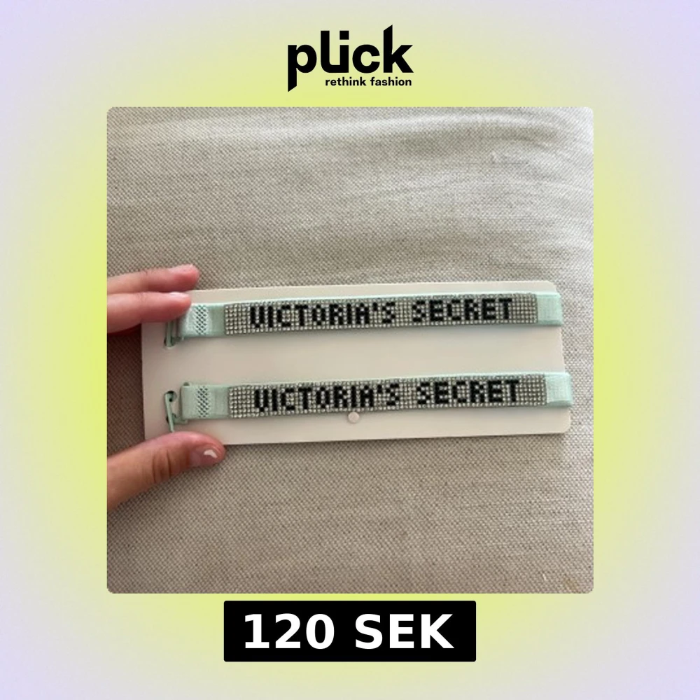 Två mintgröna bh band från Victoria's Secret med glittriga stenar och tydlig logga i svart. har justerbart band i satinliknande material och är perfekta för att ge din outfit lite extra bling.
