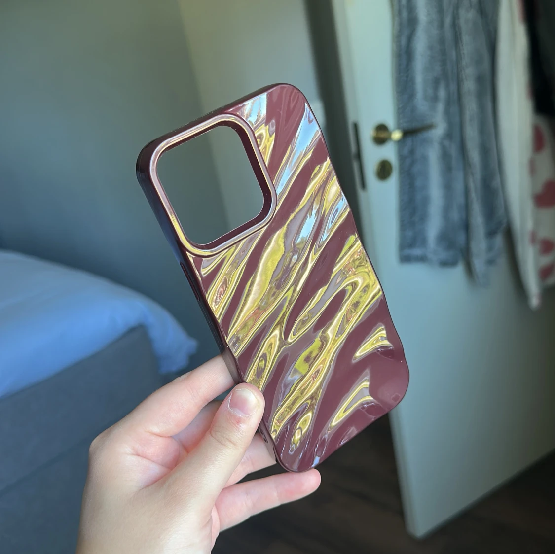 Säljer nu ett vinrött mobilskal med ”små vågor” på, till 14 PRO Max. Skalet är använt ett fåtalet gånger och har inga tecken på användning.