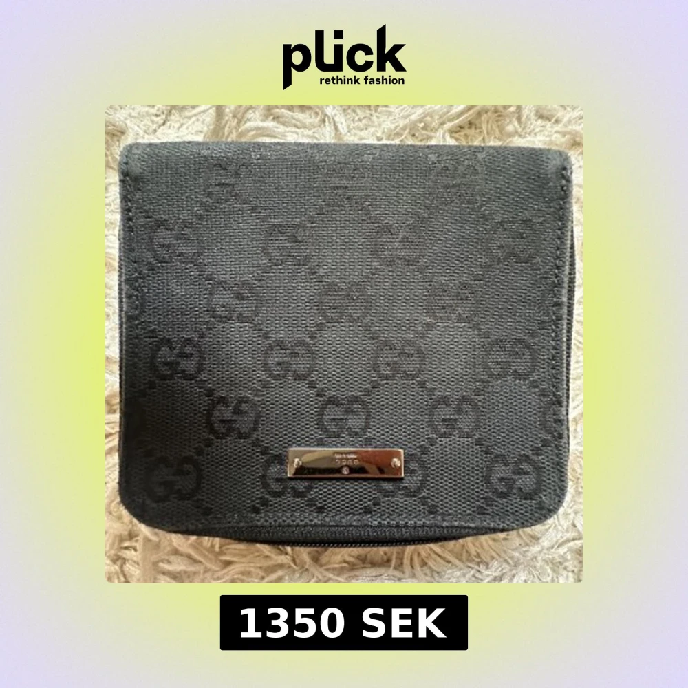 Tjena! Min mor bad mig sälja denna plånboken köpt i 2008 från Gucci i Kifissia, Aten. Plånboken är gjort av ett högkvalitativt material i svart med Guccis monogram som design. Den har en liten clip för ytteligare säkerhet och en liten ”metalplåt” med Guccis logga på utsidan. Plånboken är knappt använd och som ny, både på insidan och utsidan. Perfekt för både män och kvinnor. Hör av er vid minsta intresse!