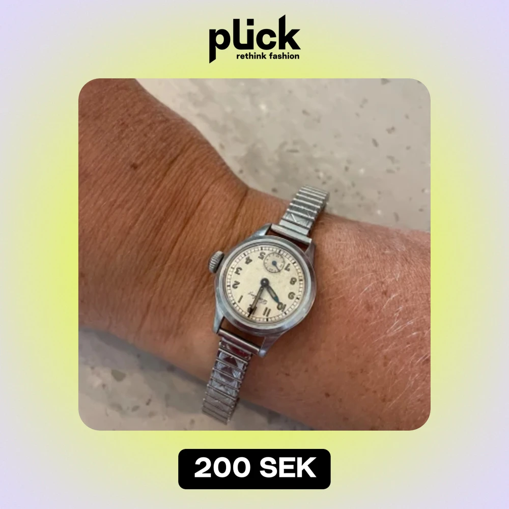 Superfint och elegant silvrigt klocksmycke. Inget fäste, utan är ett stretchigt armband. Inget fungerande batteri 💞