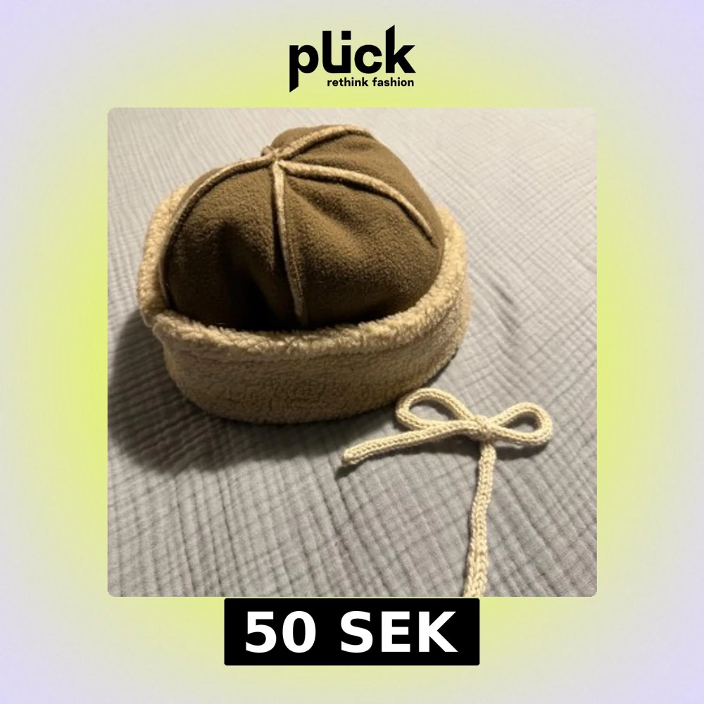 Mysig mössa i beige och brun fleece med uppvikt kant och dekorativa sömmar. Tillverkad i 100% polyester. Perfekt för kalla dagar när du vill hålla dig varm och snygg.