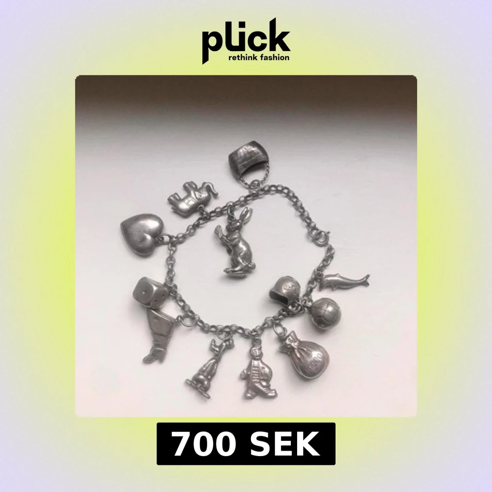 Charmigt silverarmband med flera unika berlocker, inklusive ett hjärta, en elefant, en kanin och en stövel. Perfekt för att ge en personlig touch till din stil.