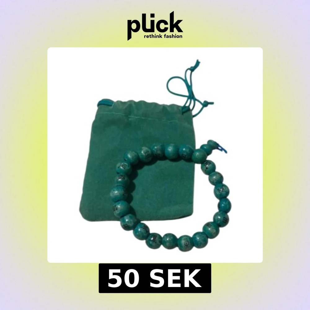 Vintage Turkost / grönt armband med träpärlor med kanji