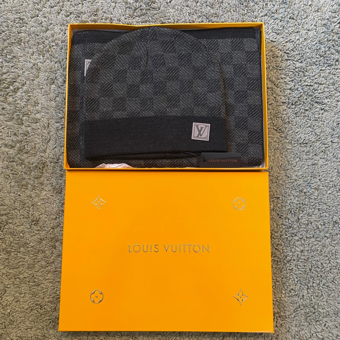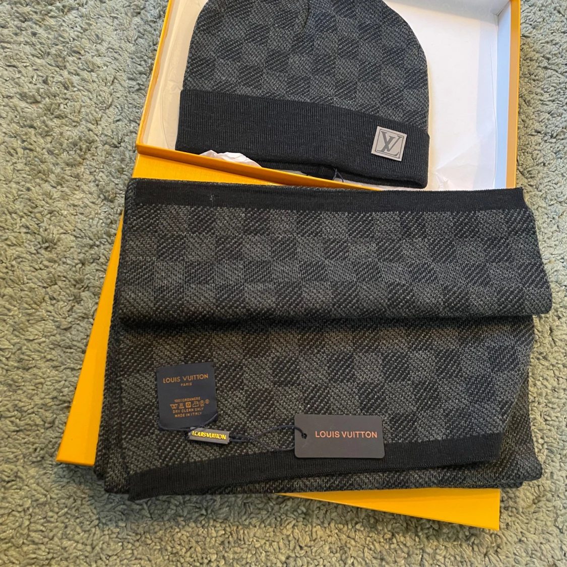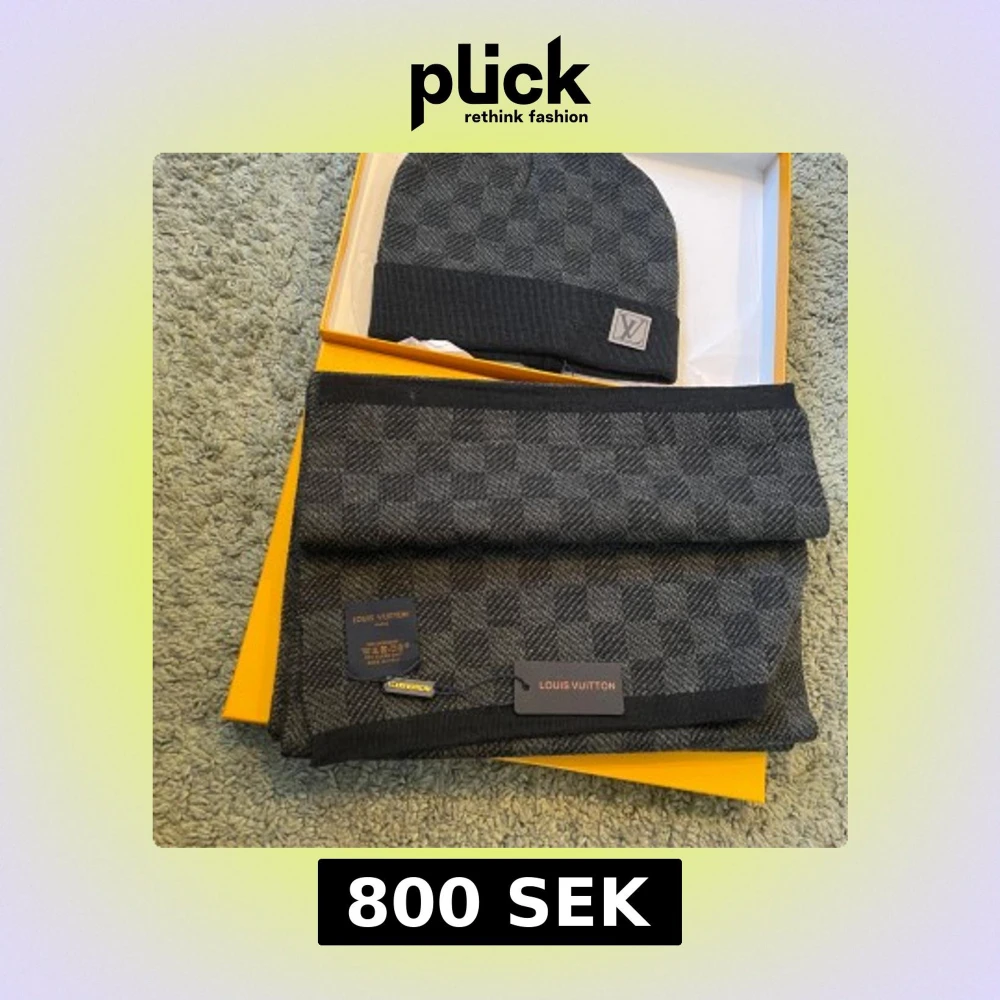 Säljer detta set som innehåller en mössa och halsduk med rutiga mönster på