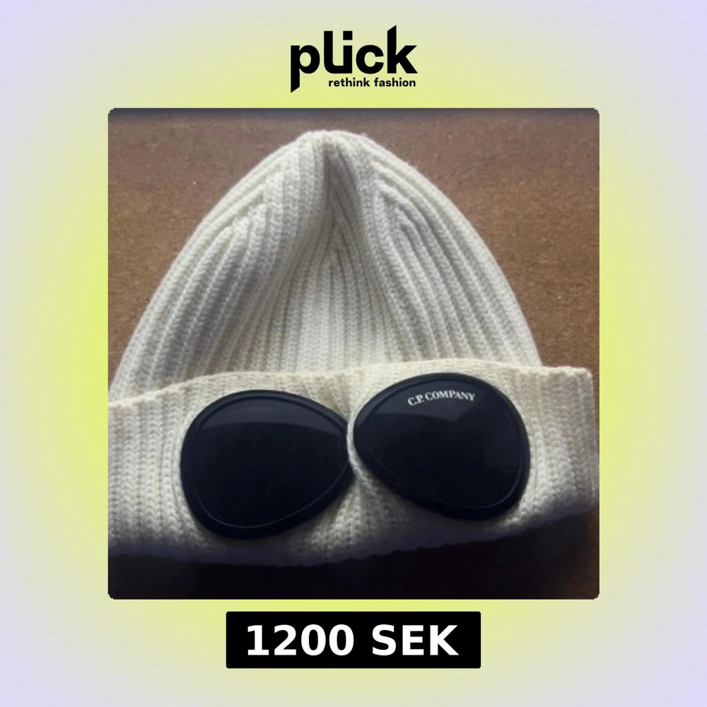Ribbstickad vit mössa från C.P. Company med ikoniska svarta goggle-linser på uppviket. Snygg och unik design som sticker ut, perfekt för dig som gillar streetwear och vill ha något extra. Materialet är mjukt och stickat för skön komfort.
