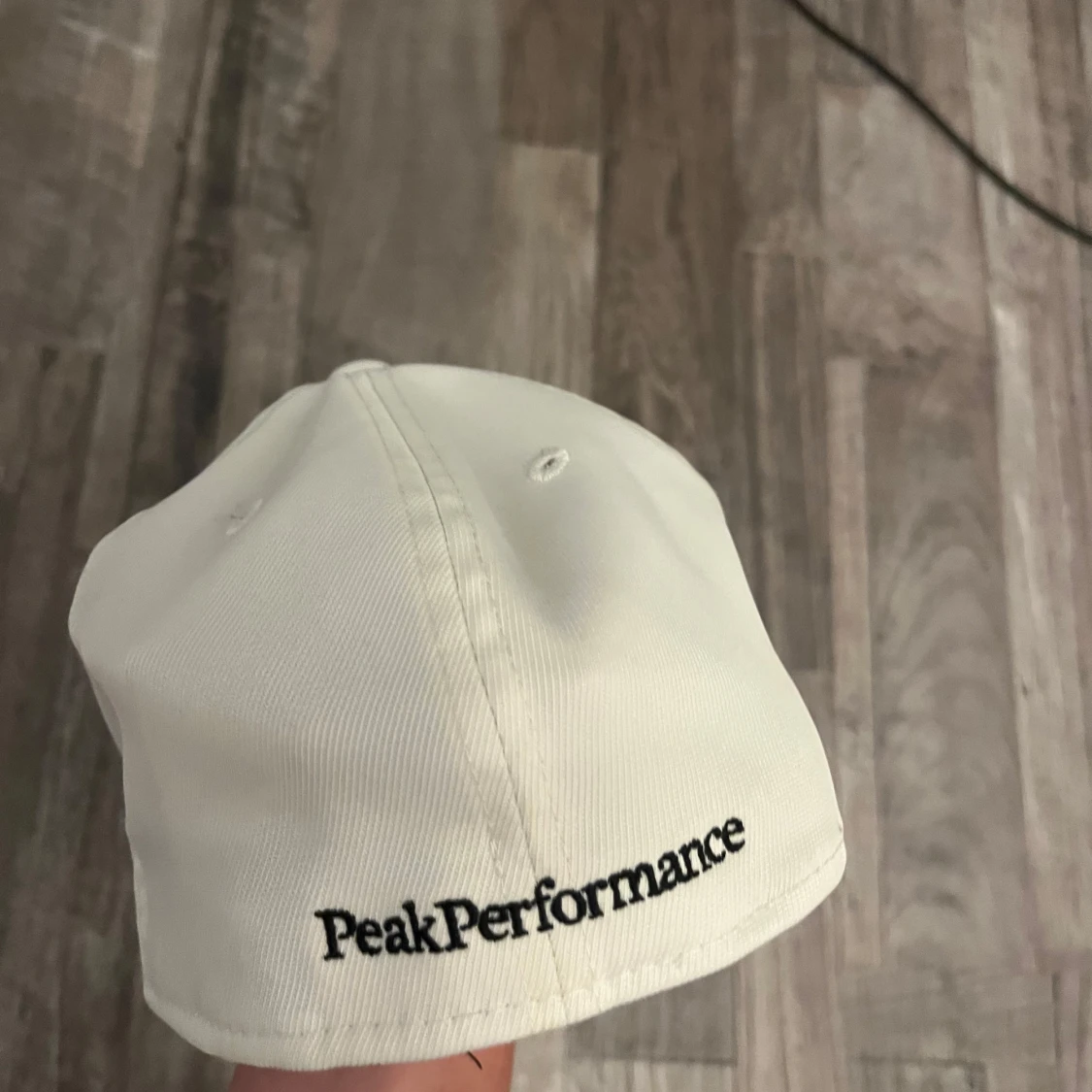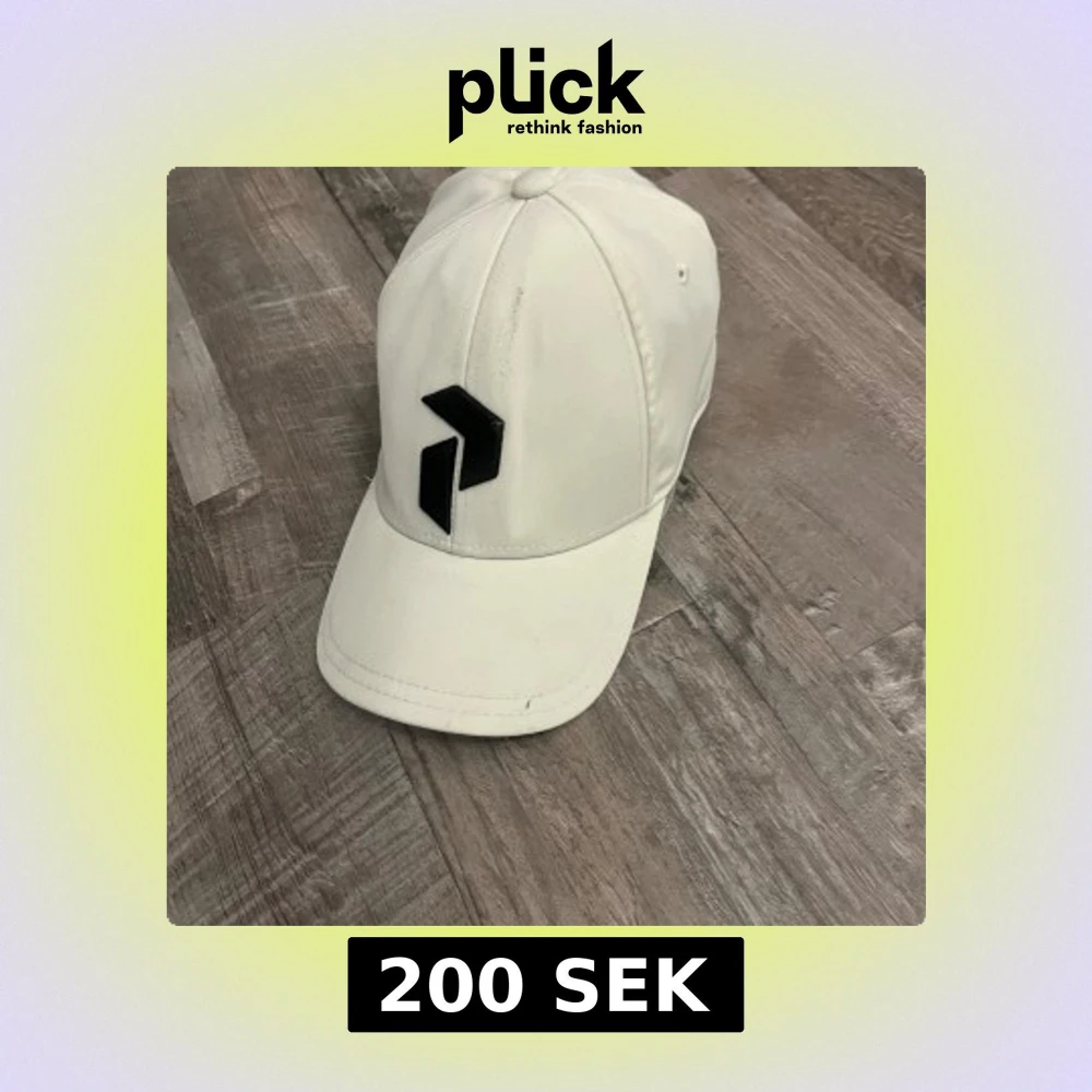 Snygg vit keps från Peak Performance med svart broderad logga framtill och text baktill. Klassisk böjd skärm och ventilerande hål på framsidan. Perfekt för dig som gillar sportig och clean stil. Säljer den pågrund av att jag inte använder den