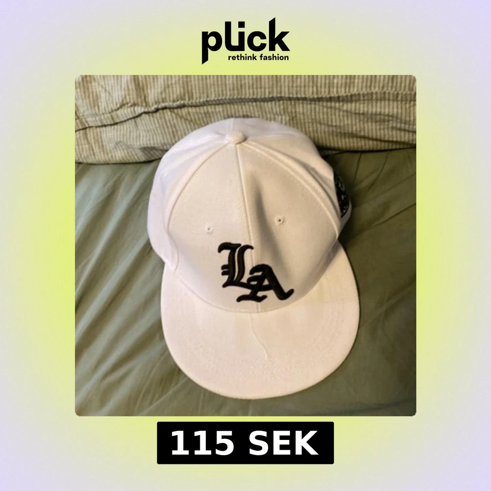 Snygg vit keps med svart LA-broderi framtill och ett coolt Los Angeles California-märke på sidan. Klassisk form med platt skärm och ventilerande hål. Tillverkad i bomull, perfekt för att lyfta din streetstyle.