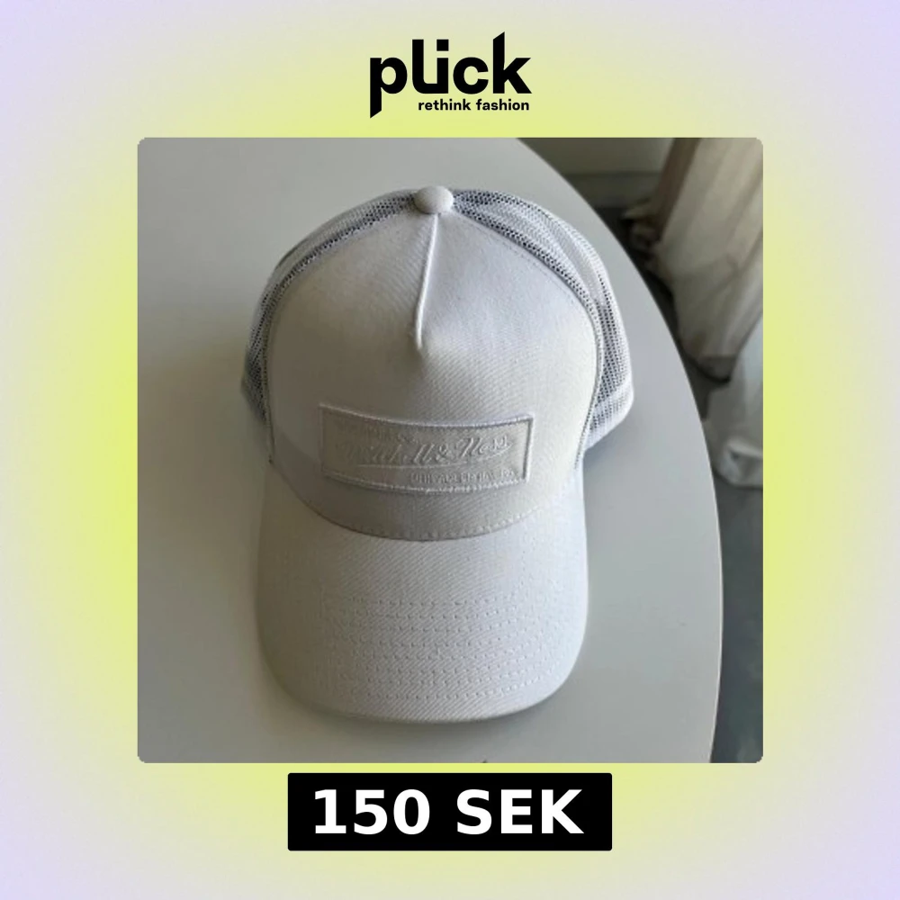 Snygg vit keps från Mitchell & Ness med mesh på sidorna och justerbar snapback baktill. Framsidan har en diskret broderad logotyp i vitt.