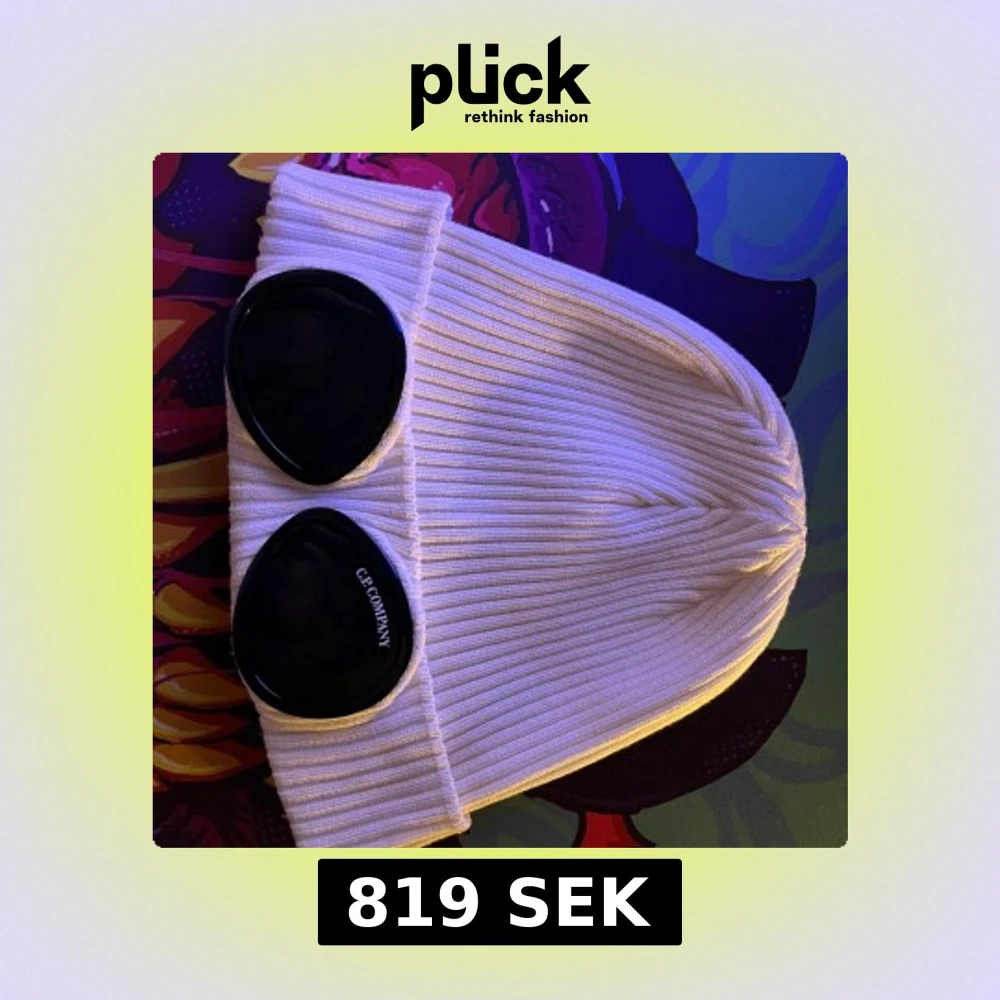 Snygg vit ribbad mössa från C.P. Company med svarta glasögonliknande detaljer framtill. Perfekt för att hålla stilen i kallare väder. Mössan är både trendig och funktionell.
