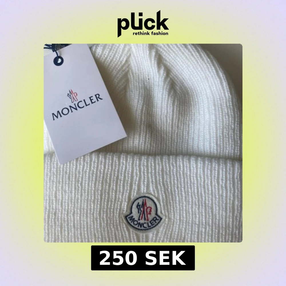 Vit ribbstickad mössa från Moncler med klassisk uppvikt kant och broderad logotyp framtill. Snygg och enkel design som passar till det mesta. Tillverkad i mjukt material för extra komfort.
