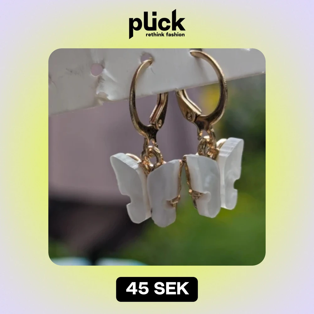 Superfina örhängen med vita fjärilar och guldfärgade detaljer. De är formade som små fjärilar och hänger på en guldfärgad ring. Perfekta för att ge en söt och elegant touch till vilken outfit som helst!