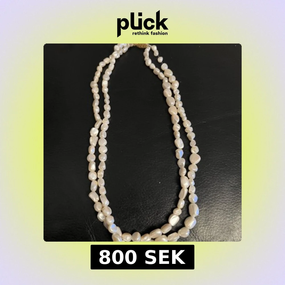 Elegant halsband med vita pärlor i två rader och en dekorativ guldfärgad låsdetalj. Perfekt för att ge en klassisk touch till din outfit.