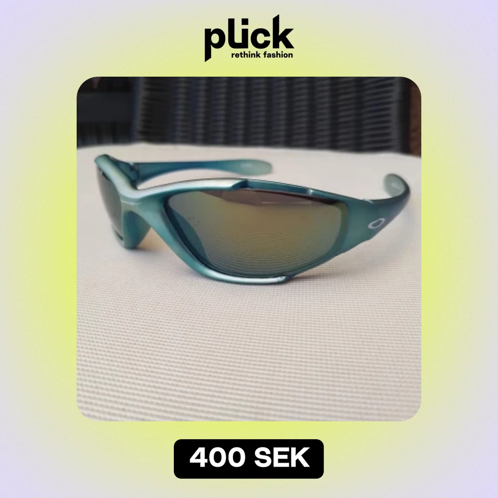 Ett par turkos/blå-grönmetallic solglasögon från Oakley. Glasen är utbytbara. Spegelglasen har några små nagg som inte märks när man bär dem (därav priset). Sjukt grymma solglasögon