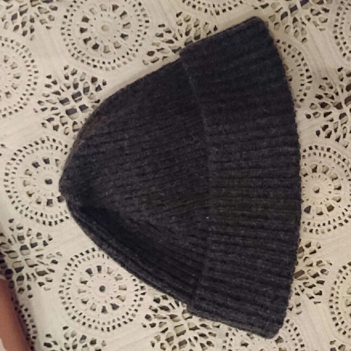 Ribbstickad Mörkgrå ullmössa. 100 % Lammull