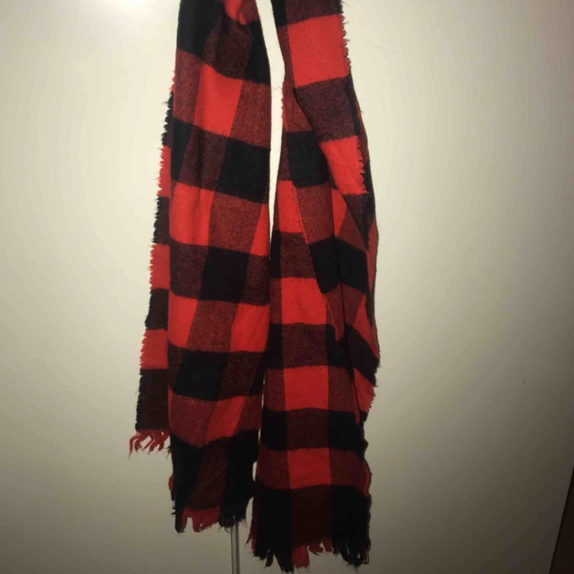 Fin röd och svart rutig halsduk som knappt är använd då den bara legat på hatthyllan, lite mindre i storleken 💕