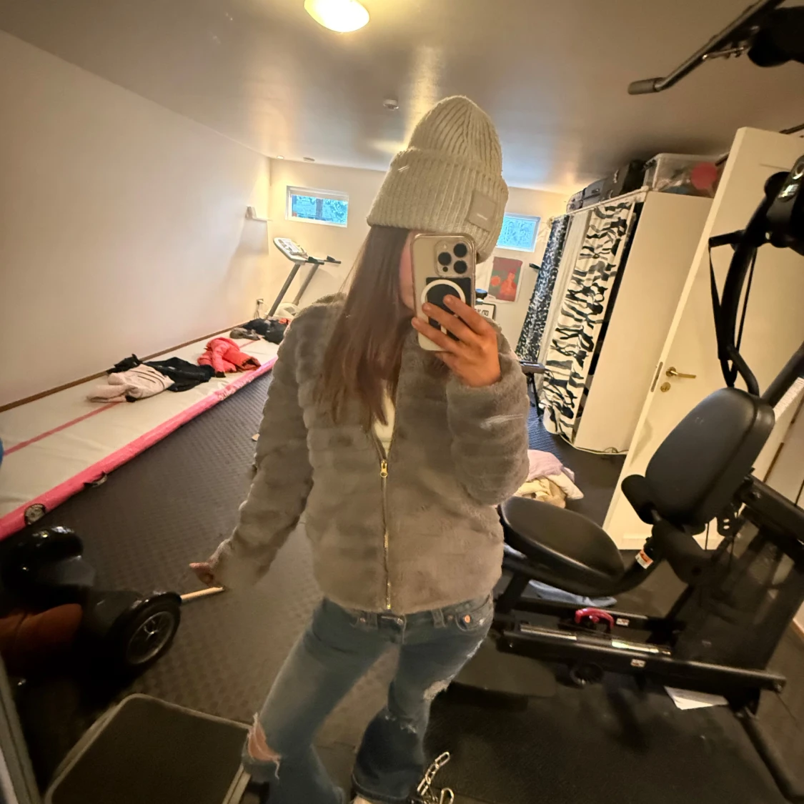 Snygg grå fluffig jacba som passar perfekt för kyligare dagar. Den har en enkel och stilren design som gör den lätt att matcha med olika outfits. Perfekt för både höst och vinter.