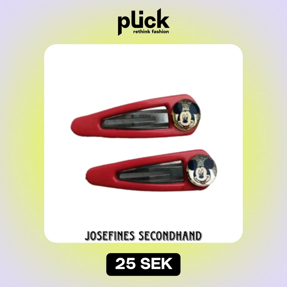 Ett par röda Musse Pigg hårspännen från 00-talet. Kan skicka med brev, frakt blir 15 kr, fri frakt vid köp av 3 eller fler smycken/accessoarer/smink prylar
