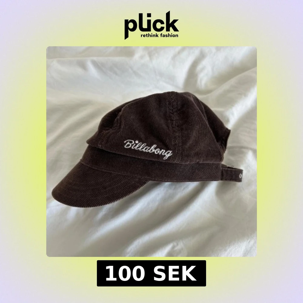 Säljer en brun keps från Billabong i mjuk manchester med böjd skärm och justerbart spänne bak. Kepsen har broderad logga framtill i vitt och en cool vintagekänsla.