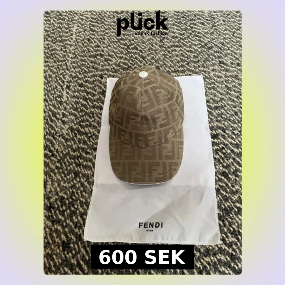 Säljer en exklusiv keps från Fendi i beige med ikoniskt FF-monogram över hela kepsen. Tillverkad i äkta skinn med bomullsfoder, justerbar rem bak och vit knapp på toppen. Perfekt accessoar för dig som gillar lyxiga detaljer och streetstyle.