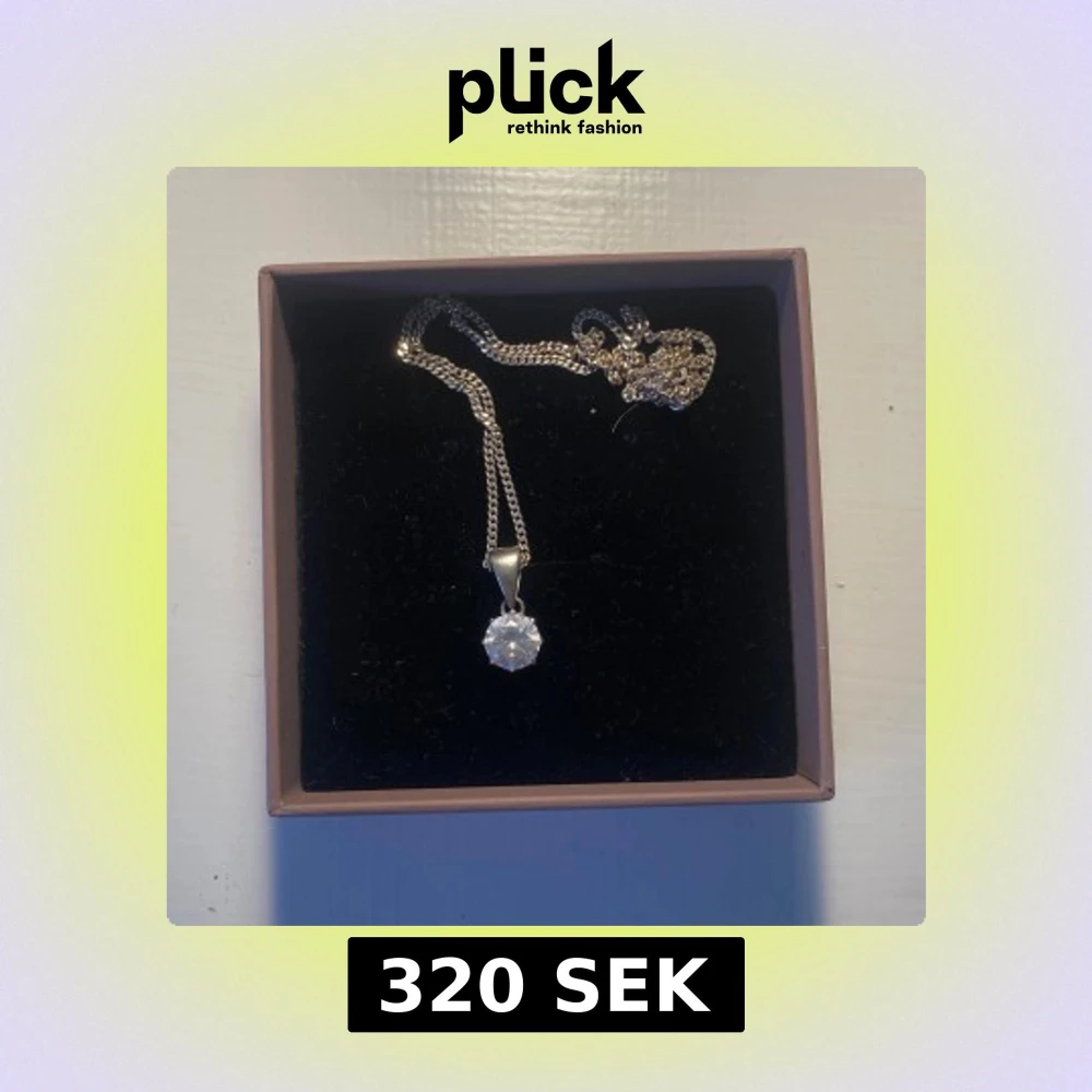 Jätte snyggt halsband i silverfärg med en sten i. Super snygg. Om jag minns rätt är den från Guldfynd