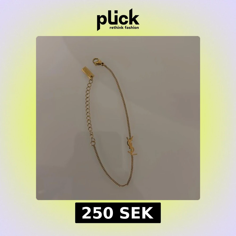 Snyggt och stilrent armband i guldton från Saint Laurent Paris med den ikoniska YSL-loggan. Tunn kedja med justerbar längd och diskret platta med märkets namn. Perfekt accessoar för att lyfta din outfit med en lyxig touch. Original förpackning saknas, endast armband!