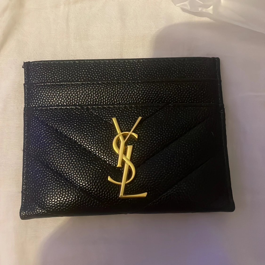 Supersnygg svart plånbok från YSL med guldigt logodetalj framtill. Pris kan diskuteras vid snabb affär!