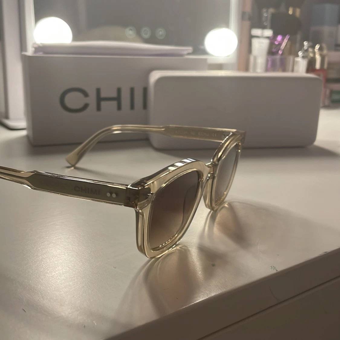 Super snygga och trendiga chimi solglasögon i färgen ecru i storlek 02 och är som nya och knappt använda. Man får även till fodralet och boxen och säljer dem pågrund av att jag köpte ett par andra💗skriv ifall ki är intresserade!!💗