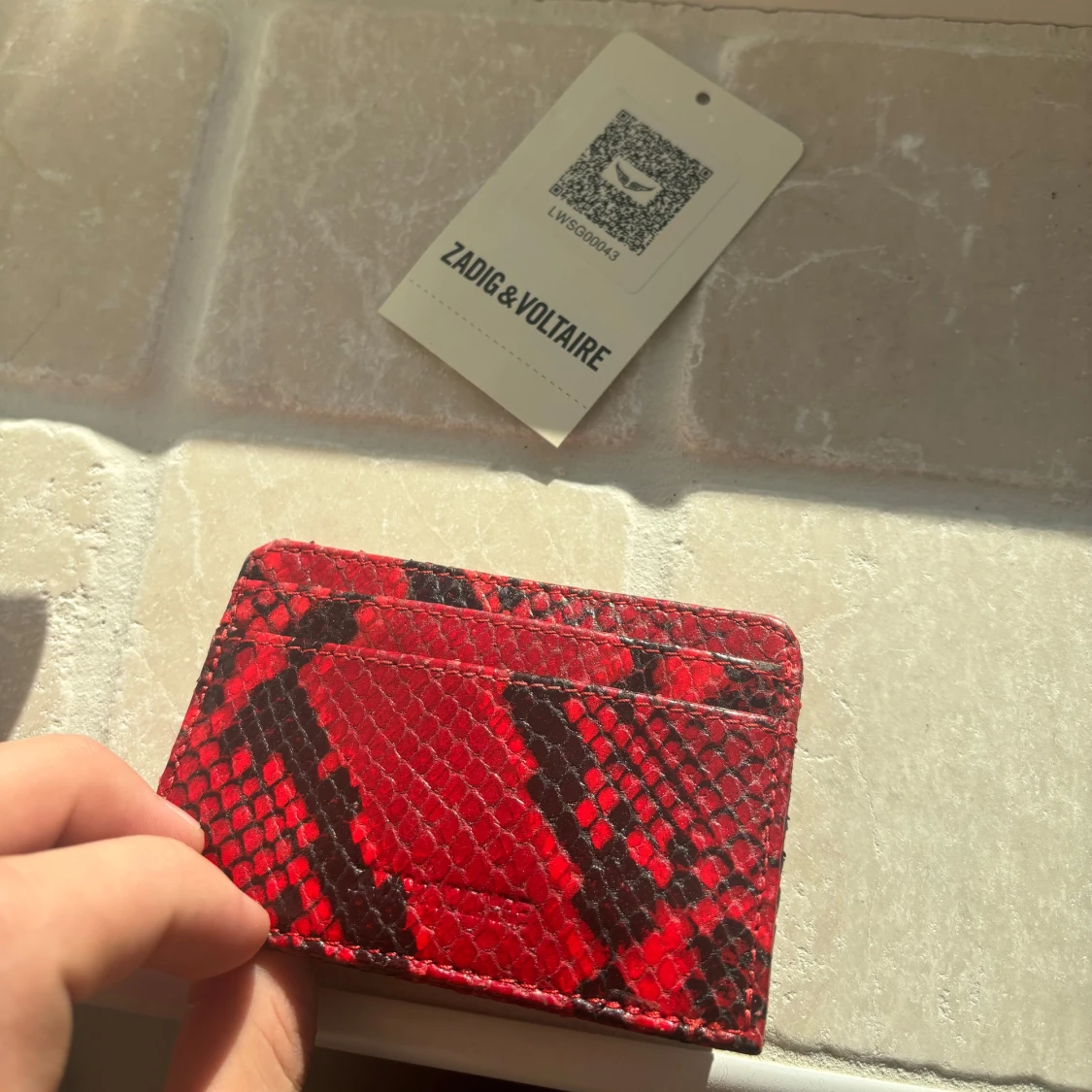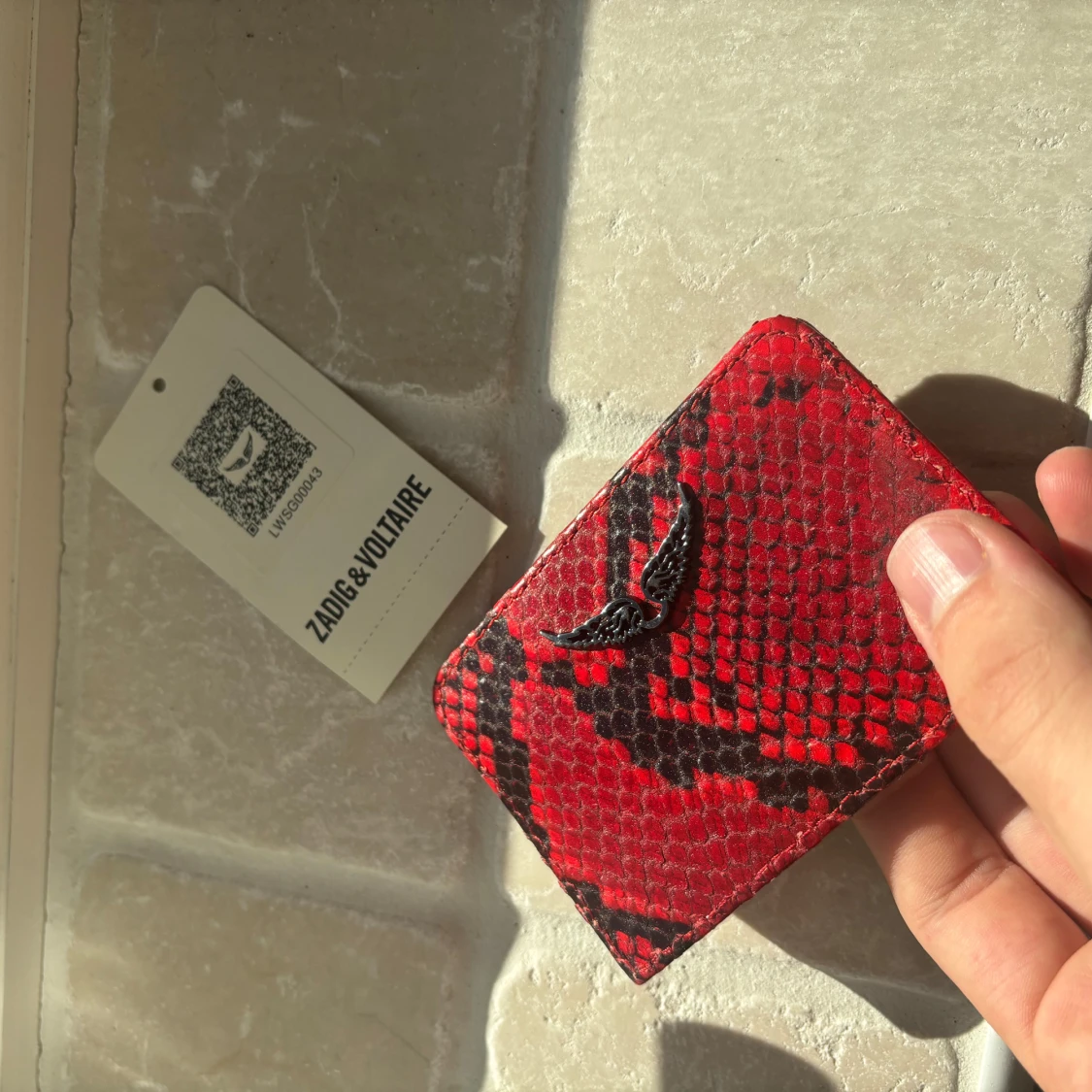 Zadig Voltaire korthållare/plånbok i väldigt sällsynt colorway. Denna är du ensam om att ha samtidigt som den lyfter din look och förvarar dina kärare ägodelar. Tag kvar! Helt ny så riktigt kap och tveka inte vid minsta fråga😊