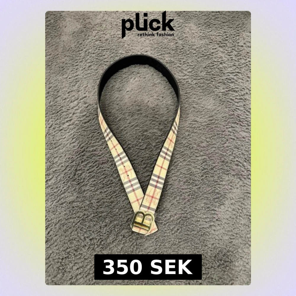 Snyggt bälte från Burberry med klassiskt rutigt mönster i beige, svart och rött. Bältet har ett stort guldigt B-spänne och är gjort i präglat skinn. Insidan är svart med diskret mönster. Perfekt accessoar för att lyfta din outfit.