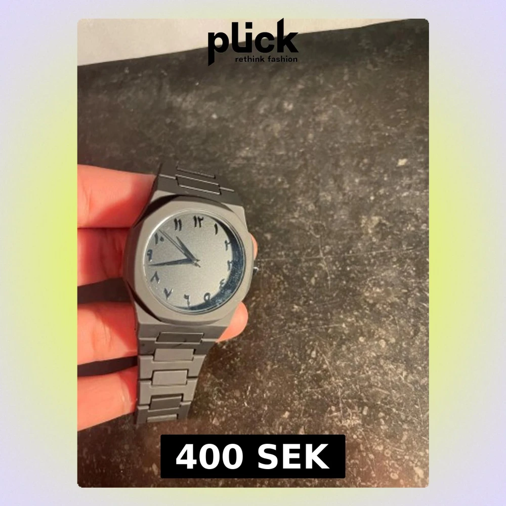 Snygg klocka i matt grått stål med länkarmband och minimalistisk urtavla. Urtavlan har arabiska siffror och en stilren design utan logga. Klockan har ett robust spänne i rostfritt stål och passar perfekt för dig som gillar en clean och modern look.
