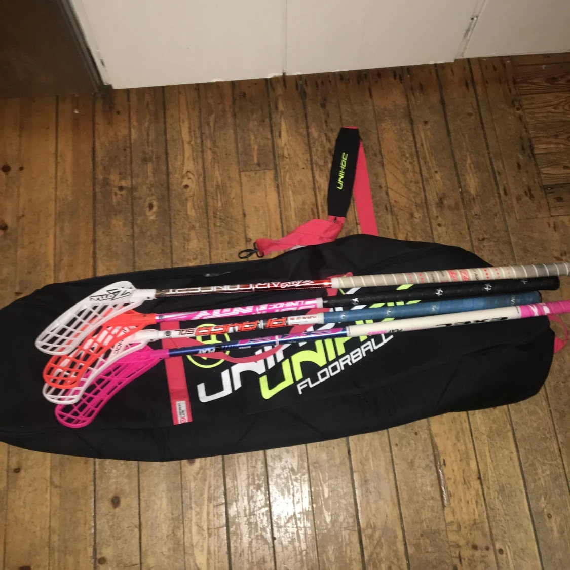 4 innebandy klubbor + en stor bag, unihoc,exel, zone. Skicka medelande för mer info och pris
