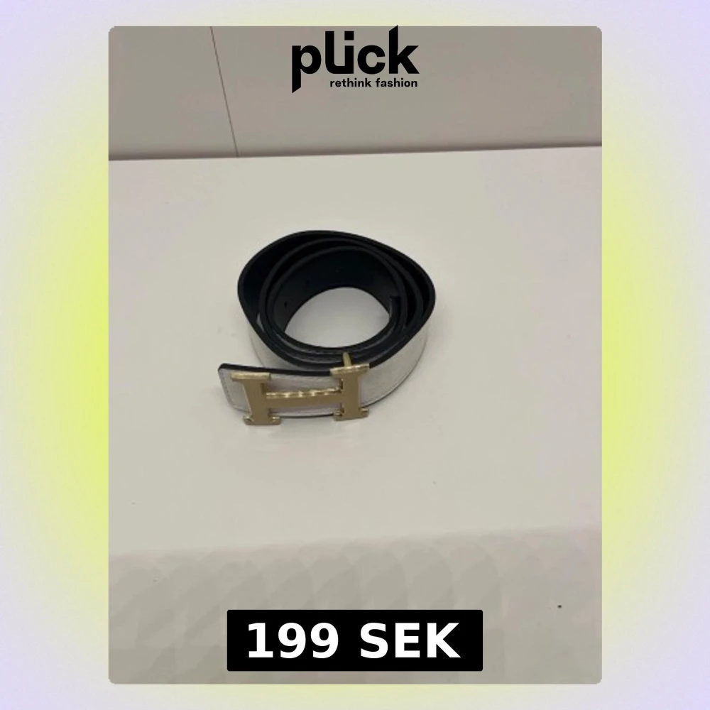 Ett vit bälte med guldigt H. Den är helt ny och är 105 cm lång. Pris kan diskuteras och skriv om du har några frågor.
