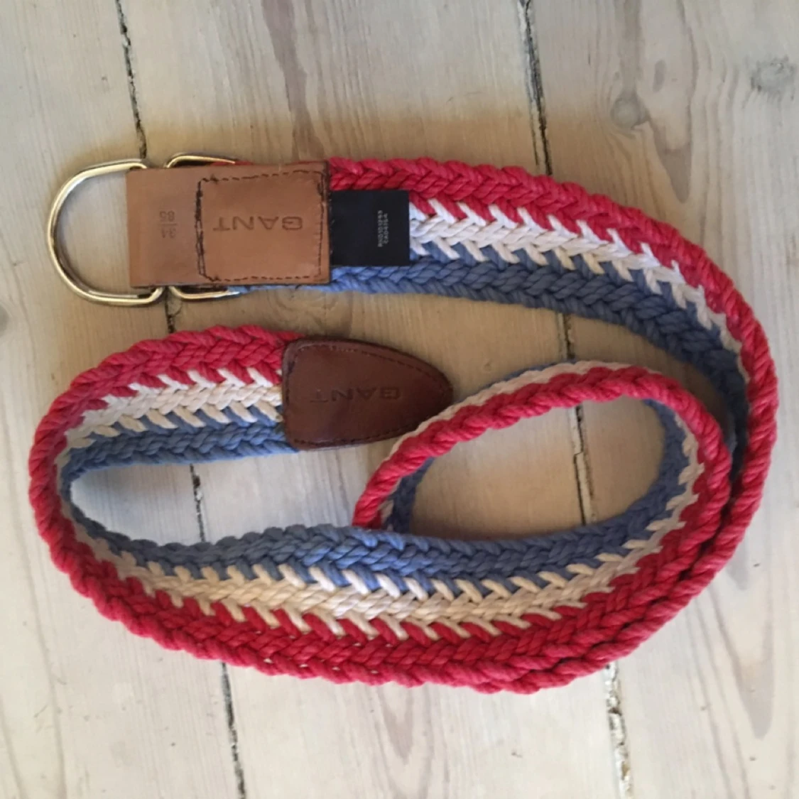 Flätat bälte från Gant med skinndetaljer. Väl använt men i bra skick. Hämtas på Kungsholmen eller skickas mot frakt.