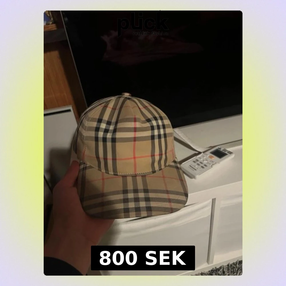 Rutig Burberry keps i beige - Säljer en klassisk Burberry keps i beige med det ikoniska rutiga mönstret i svart, vitt och rött. Justerbar baktill med svart spänne och Burberry London England-logga. Perfekt accessoar för dig som vill sticka ut med stil. Den har dock en skada på knappen där back på kepsen samt lite blått färg på den som man tydligt ser på bild! Vid frågor är d bara att ställa dem tack!