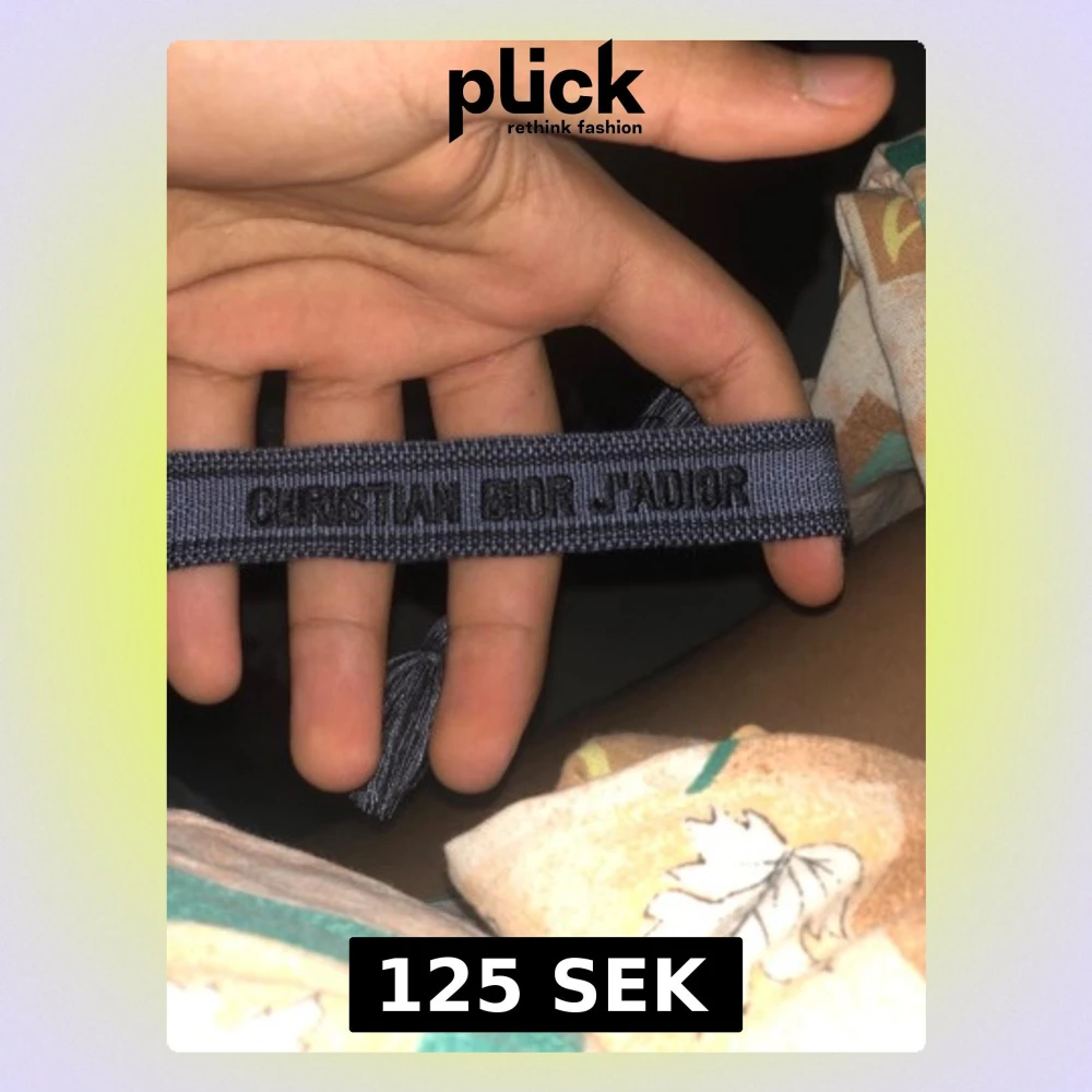Säljer ett mörkblått armband från Christian Dior med texten 'J'Adior' invävt. Armbandet har justerbar knytning och avslutas med två tofsar. Perfekt accessoar för dig som gillar exklusiva detaljer och vill lyfta din outfit.
