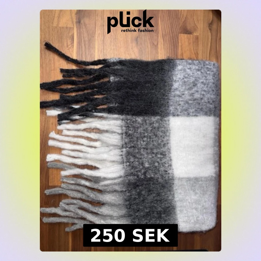 Mjuk och fluffig halsduk med rutigt mönster i svart, grått och vitt. Halsduken har långa fransar i båda ändar och är perfekt för att hålla värmen under kalla dagar. Materialet känns ulligt och ger en mysig känsla. Halsduken liknar ”Acne Studios halsdukarna och är oanvänd (ny).