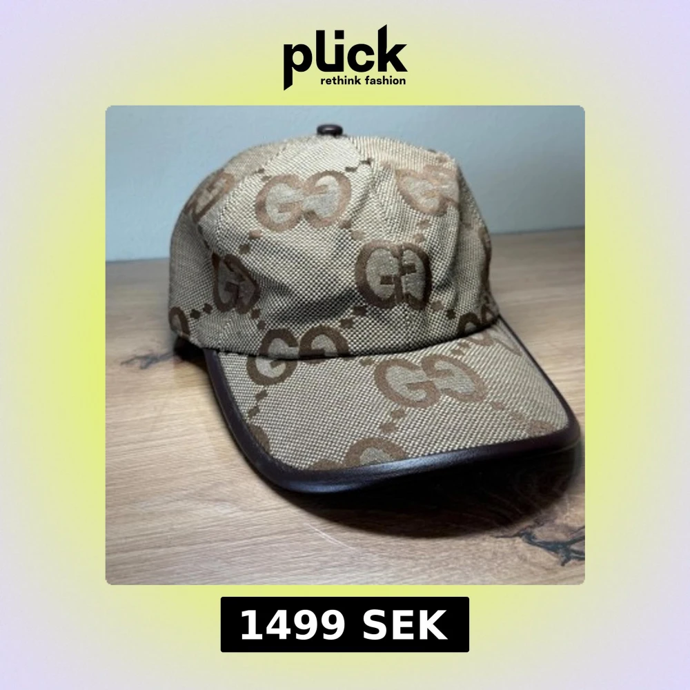 Säljer en snygg keps från Gucci i beige och brunt med det klassiska GG-mönstret över hela kepsen. Kepsen har justerbar rem bak i brunt skinn och böjd skärm med skinnkant. Materialet är kraftig bomullscanvas och detaljer i skinn.