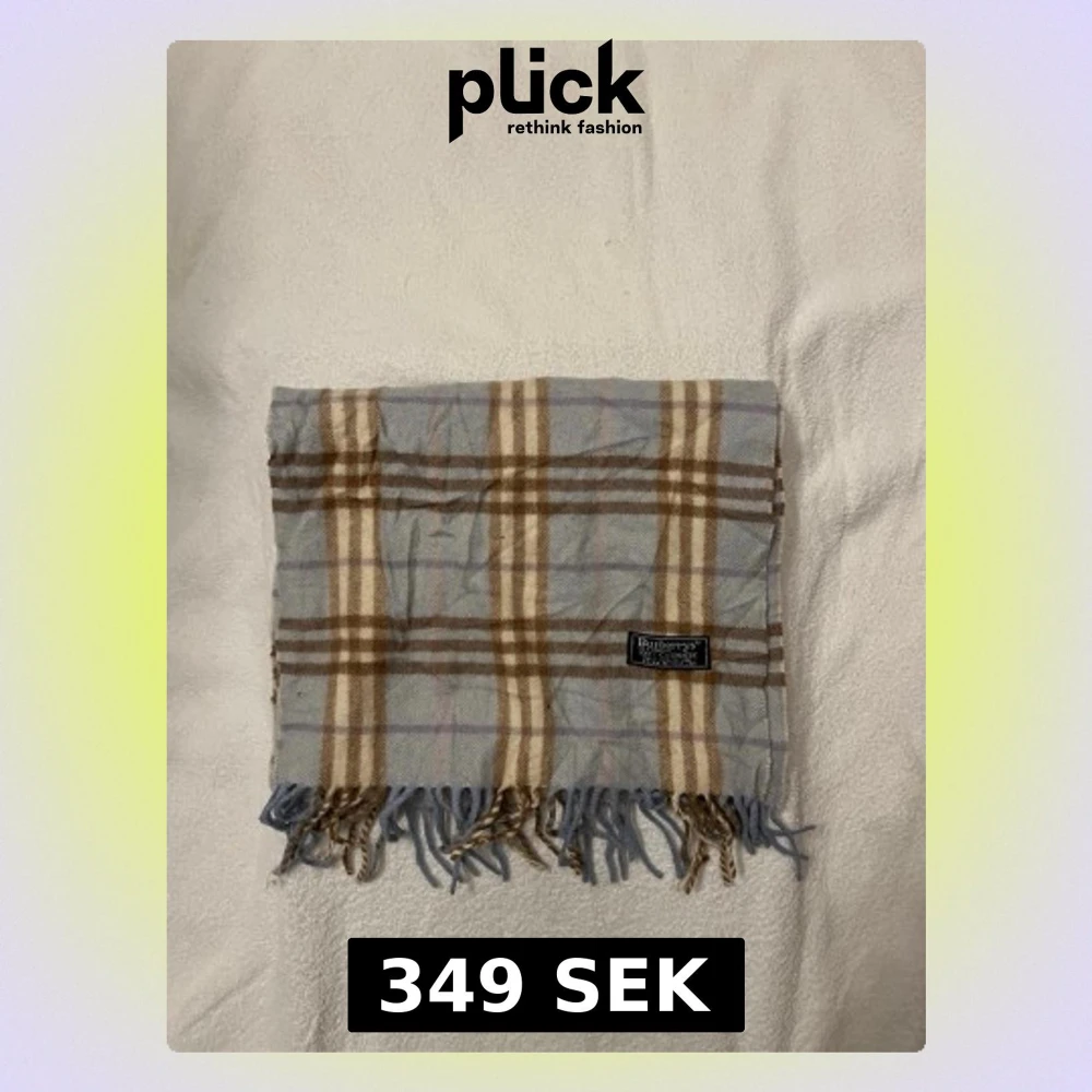 Säljer en klassisk rutig halsduk från Burberrys i ljusblått, beige och brunt. Halsduken har någon litet litet små hål men d syns inte vid användning sjävklart för det knappt syns!